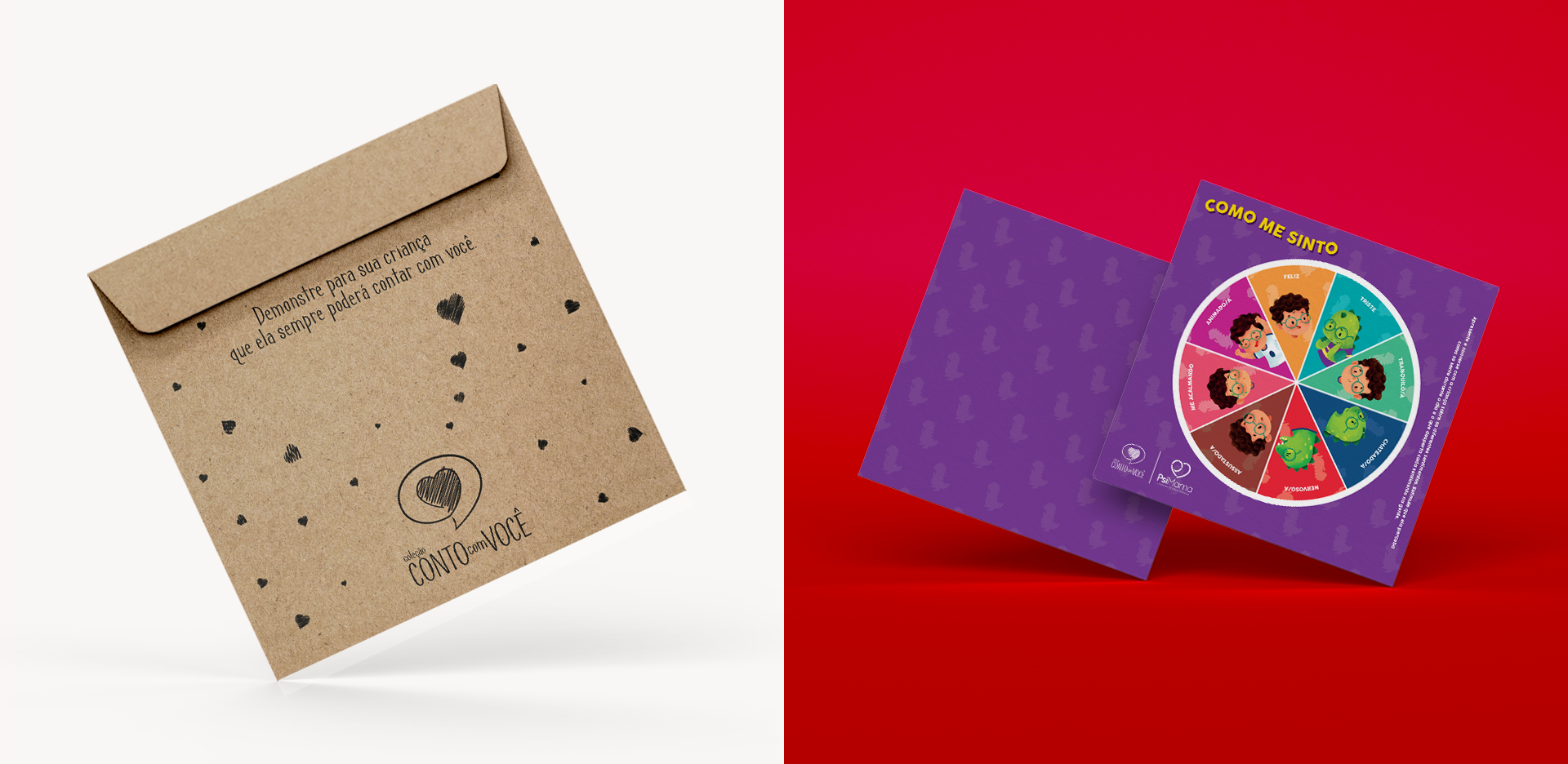 Para a Conto Com Você, desenvolvemos uma identidade visual graciosa e descontraída, que comunica as características afetuosas e sentimentais da marca e dialoga diretamente com seu público, e também criamos os projetos gráficos de livrinhos encantadores que conectam adultos e crianças.