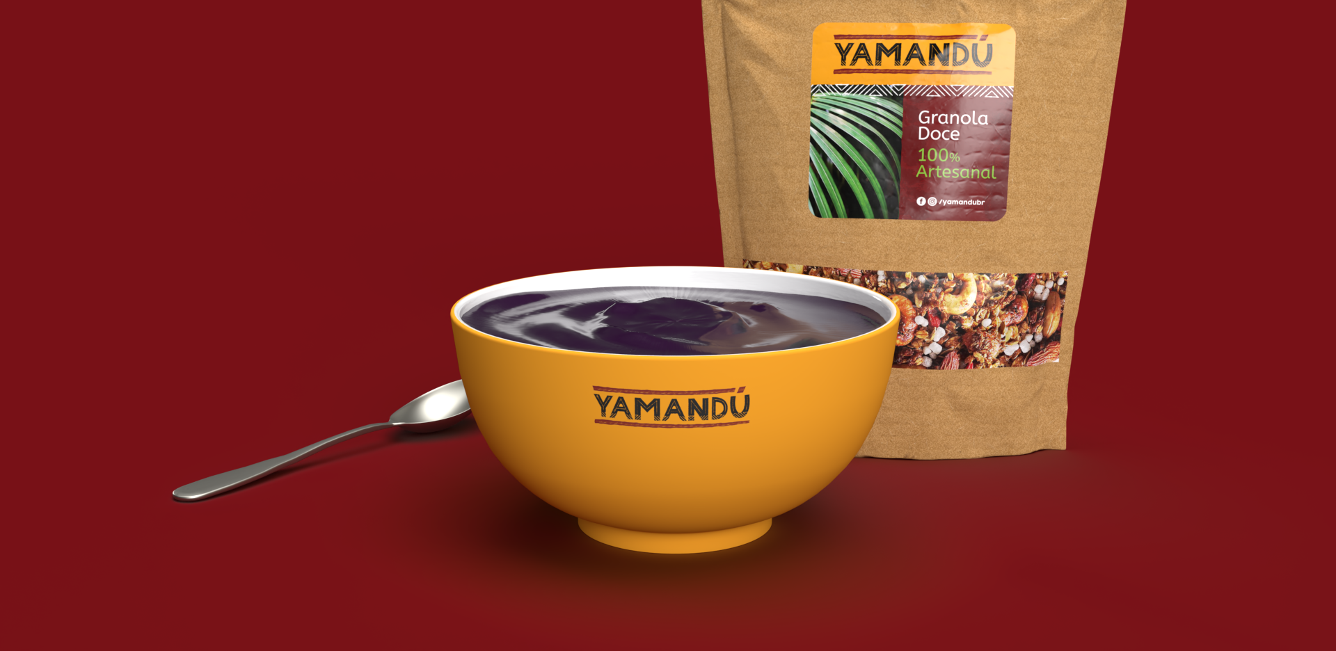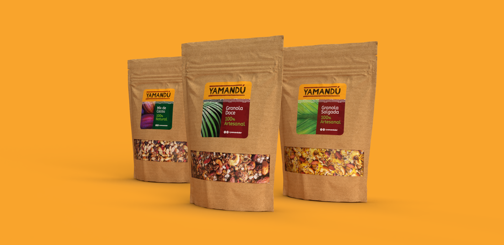 Para a Yamandú criamos uma marca vibrante, que explora tons terrosos e as conexões com as tradições e ingredientes da culinária brasileira.