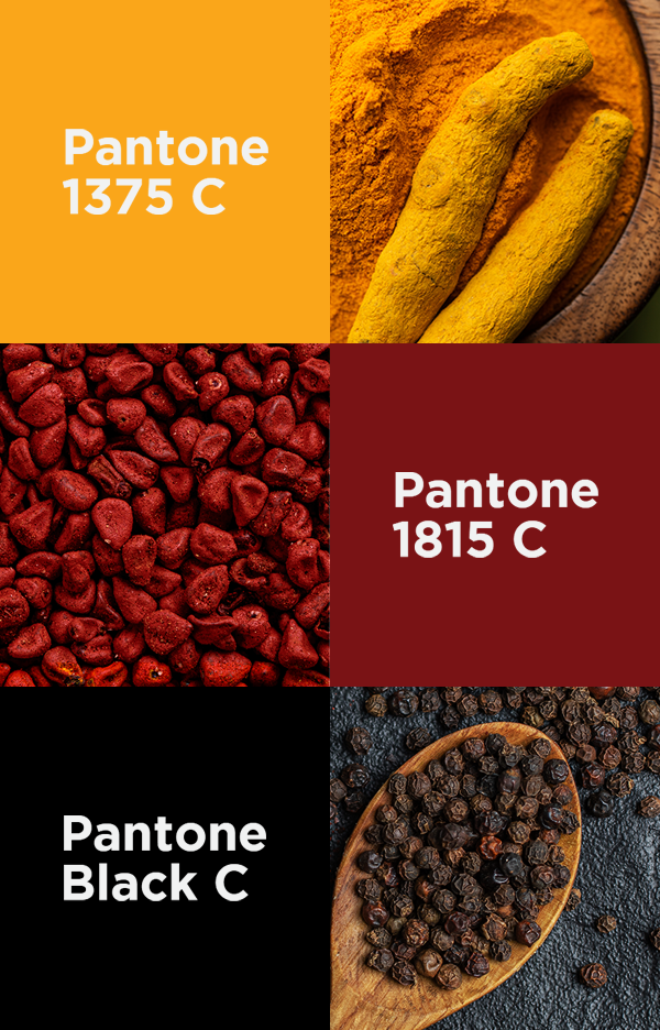 As cores escolhidas para a marca Yamandú se inspiram na vivacidade da culinária brasileira.